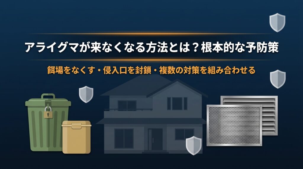 アライグマ被害を根本的に解決するには、餌場の除去・侵入口の物理的封鎖・忌避剤や電子機器の併用といった総合的なアプローチが必要です。蚊取り線香や木酢液・バルサンなどの煙・匂い対策はあくまで補助手段として捉え、繰り返し被害が発生する場合はプロの力を借りることが確実な解決への最短ルートです。