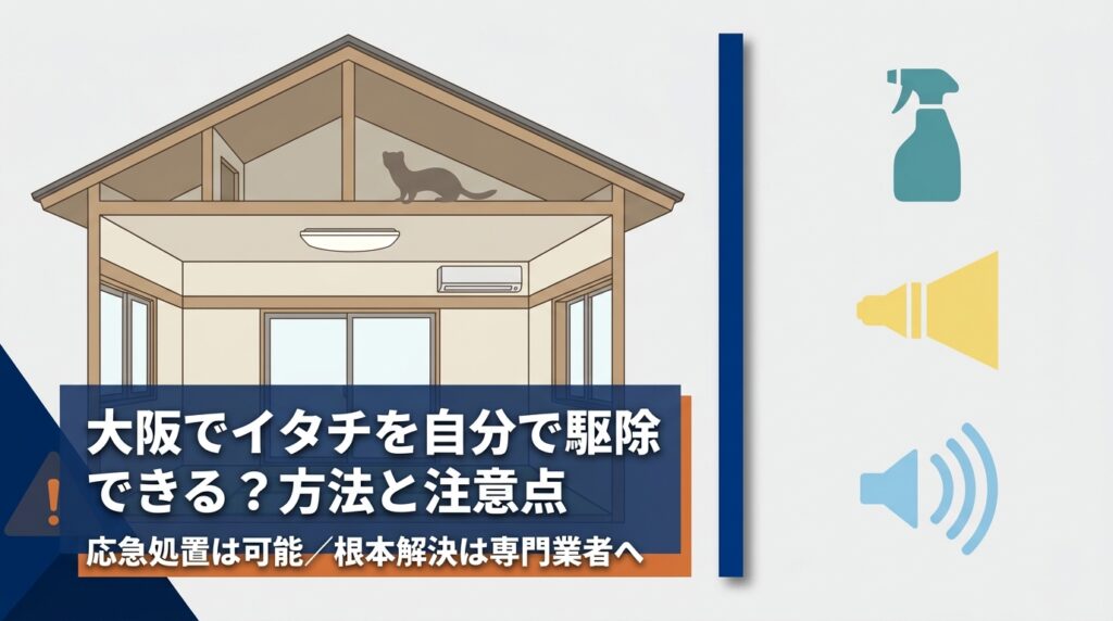 「天井裏から走り回る音がする」「悪臭がひどくなってきた」――大阪府内でイタチ被害に悩む方は少なくありません。大阪は飲食店が密集する都市環境や河川の多さから、イタチが住宅に侵入しやすい条件が揃っています。しかし、いざ駆除を依頼しようとしても、どの業者を選べばよいのか、費用はどのくらいかかるのか、行政に相談できるのかと迷う方が多いのが実情です。
