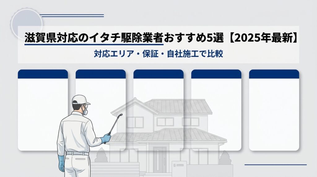 滋賀県でイタチ駆除を依頼できる業者は複数ありますが、実績・保証・自社施工の有無で大きな差が出ます。ここでは「滋賀県対応可」「保証制度あり」「施工体制が明確」「公開実績あり」の4基準で5社を厳選し、当協会の特別会員2社を含めて比較します。