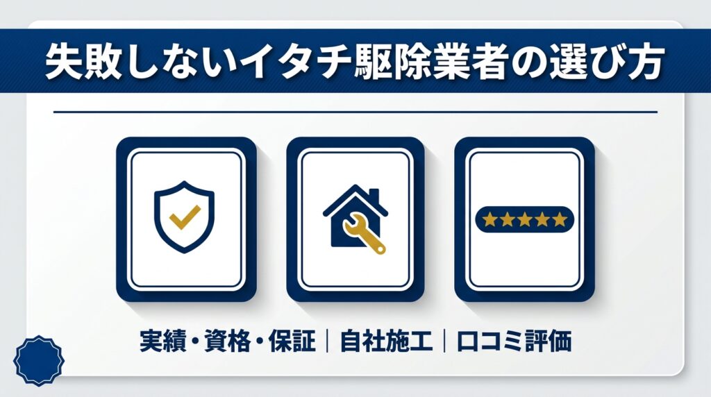 4. 失敗しないイタチ駆除業者の選び方【3つのポイント】